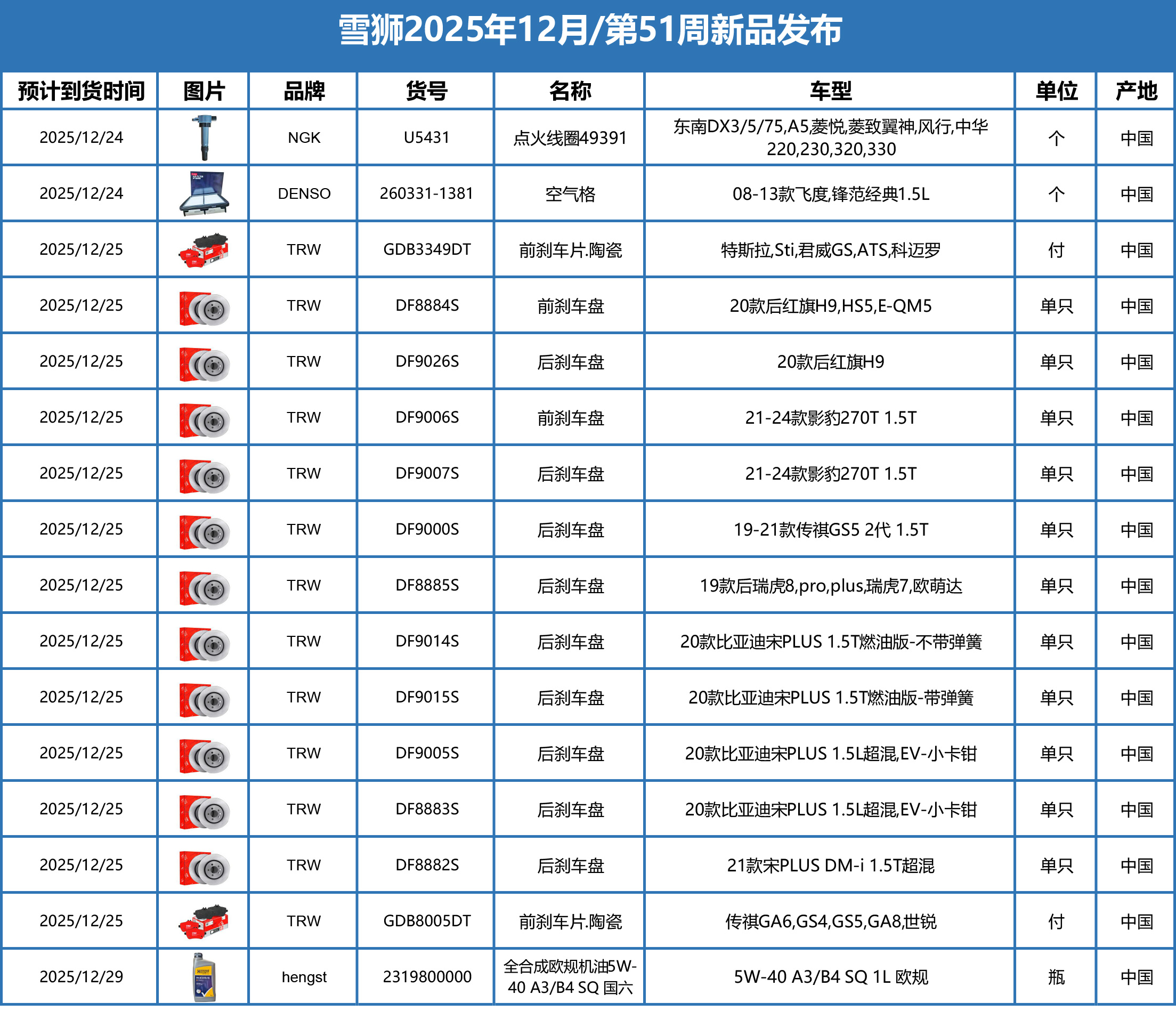Autoafter December / Week 51 2025 Arrival New Product Information 2025-12-31 Autoafter Product News --views