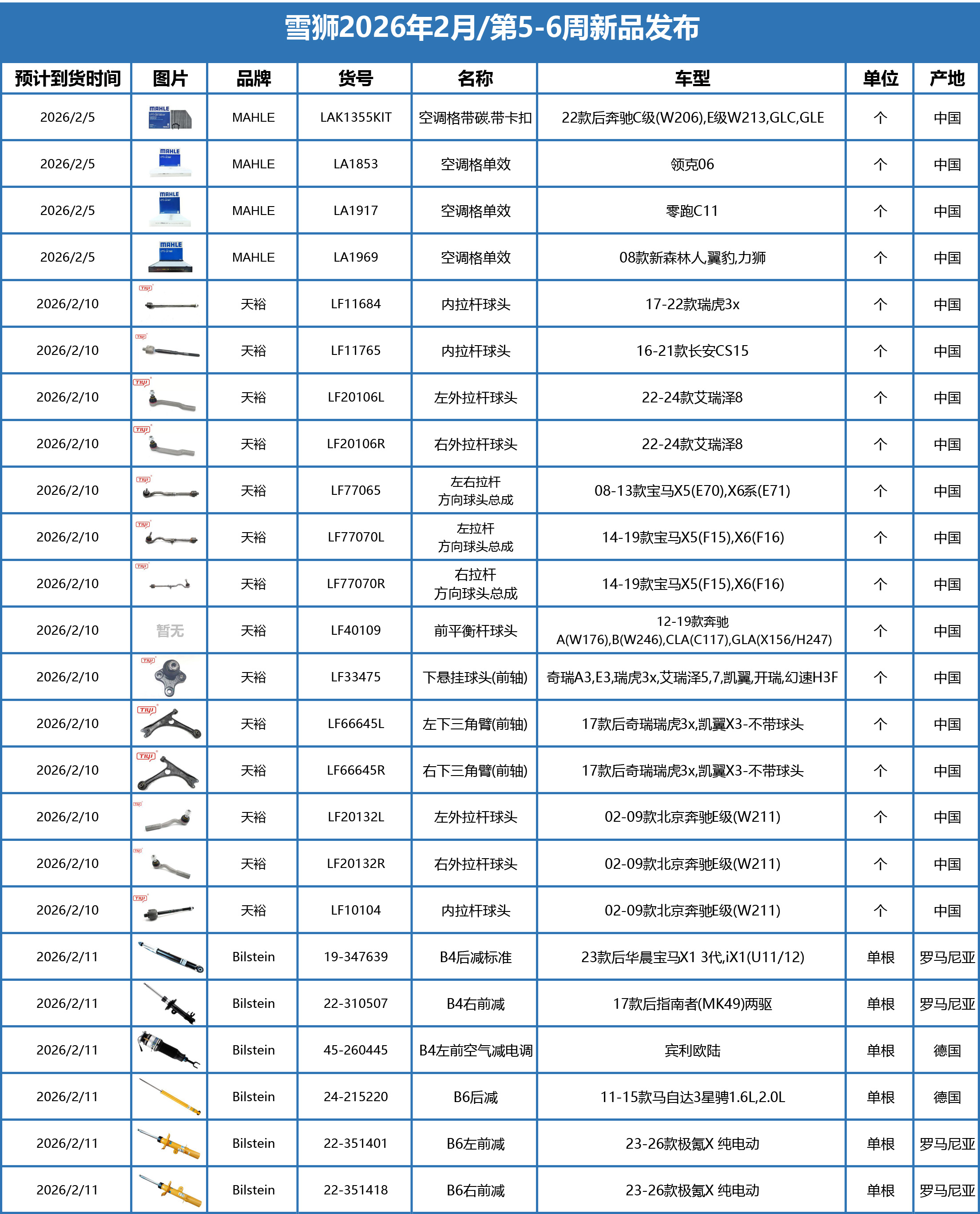 Autoafter February / Week 5-6 2026 Arrival New Product Information 2026-02-12 Autoafter Product News --views