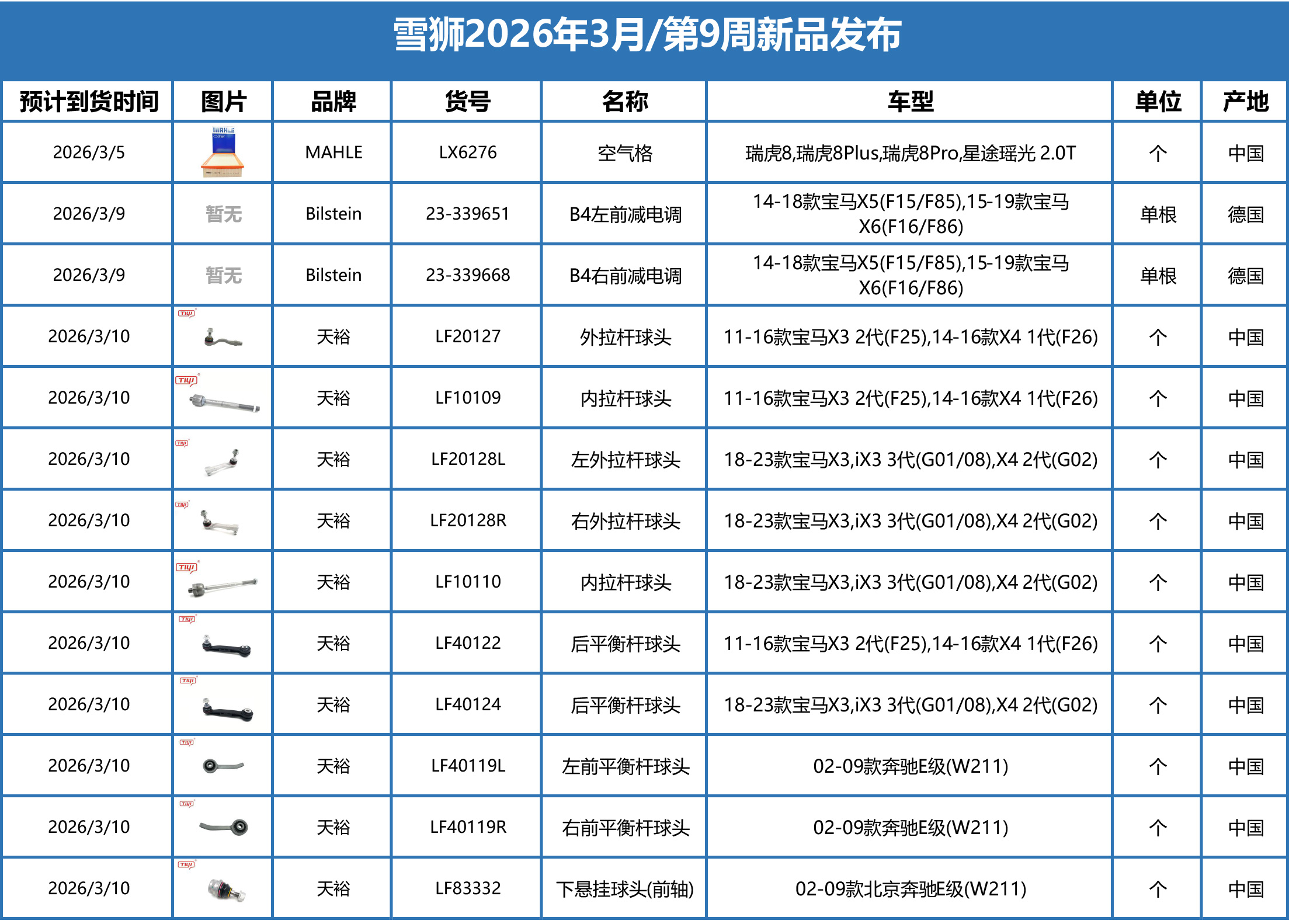 Autoafter March / Week 9 2026 Arrival New Product Information 2026-03-12 Autoafter Product News --views